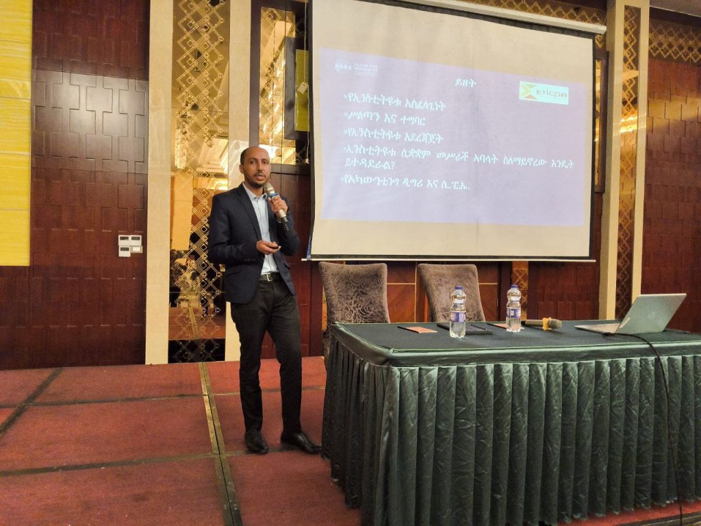 የኢትዮጵያ የሂሳብ አያያዝና ኦዲት ቦርድ ተ/ዋና ዳይሬክተር እና የኢንስቲትዩቱ ጊዜያዊ አስተዳደር ም/ቤት ሰብሳቢ አቶ ፍቃዱ አጎናፍር  በመክፈቻ ንግግራቸው እንደተናገሩት የውይይቱ ዓላማ ኢንስቲትዩቱ በአዋጅ 1372/2017 ተቋቁሞ እና ጊዜያዊ የአስተዳደር ምክር ቤት ሰባት አባላት ተመድበውለት ሥራ ከጀመሩ ወዲህ ኢንስቲትዩቱን ወደ ስራ ለማስገባት በርካታ ተግባራት የተከናወኑ መሆኑን ገልፀው ኢንስቲትዩቱ የIFAC አባል ለመሆን በሚያደርገው ጉዞ በመስራች አካላት የሚከናወኑ ተግባራት ቅድሚያ ሊሰጣቸው የሚገቡ ጉዳዮች በመኖራቸው ነው ብለዋል፡፡